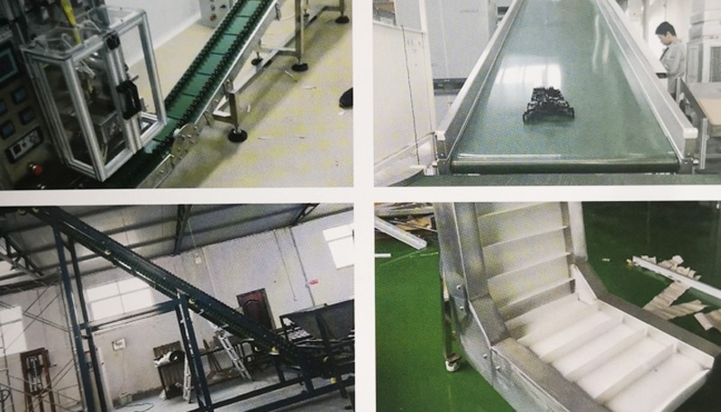 在皮帶表面高頻焊接裙邊擋板以達(dá)到提升輸送目的,最大提升角度45。