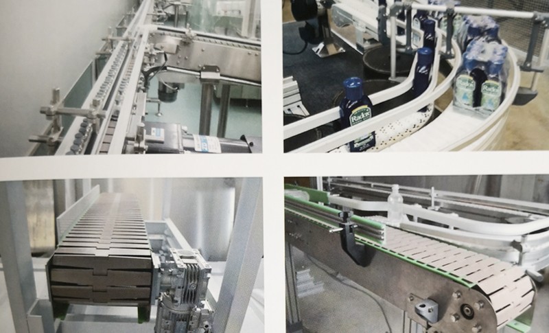 該輸送機機身鏈板整體材質(zhì)為不銹鋼,主要適用于玻璃瓶,以及重載等場景,鏈條寬度從82.6mm至304.8mm等多種規(guī)格,最小轉(zhuǎn)彎半徑460mm。